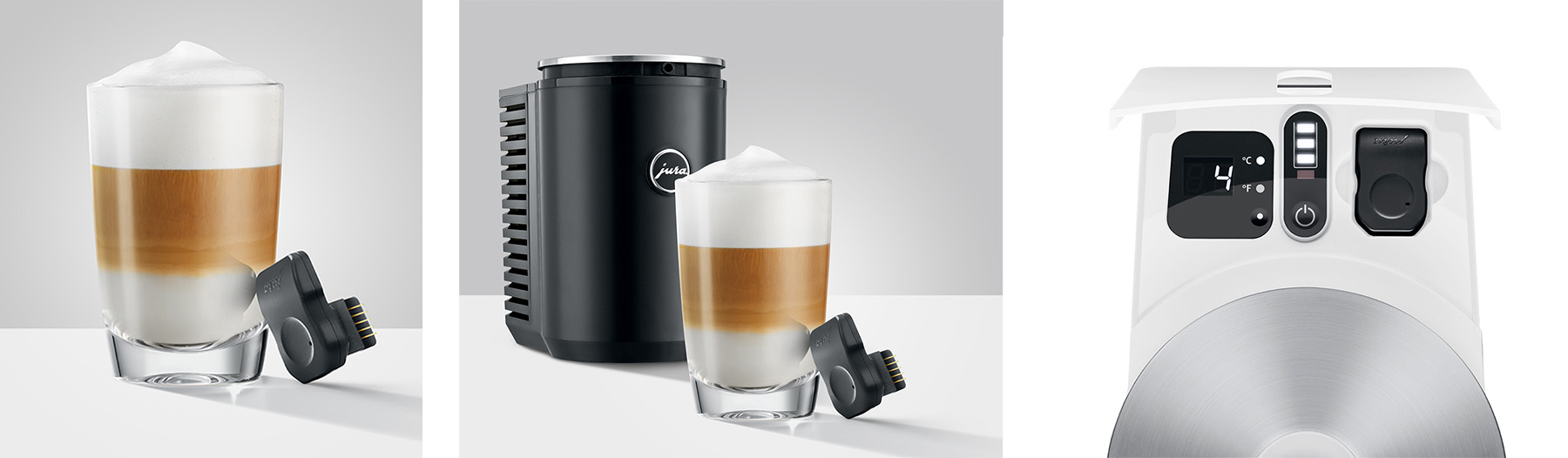 Należy pamiętać, że z automatycznym ekspresem do specjałów kawowych można połączyć tylko albo chłodziarkę Cool Control, albo aplikację JURA.