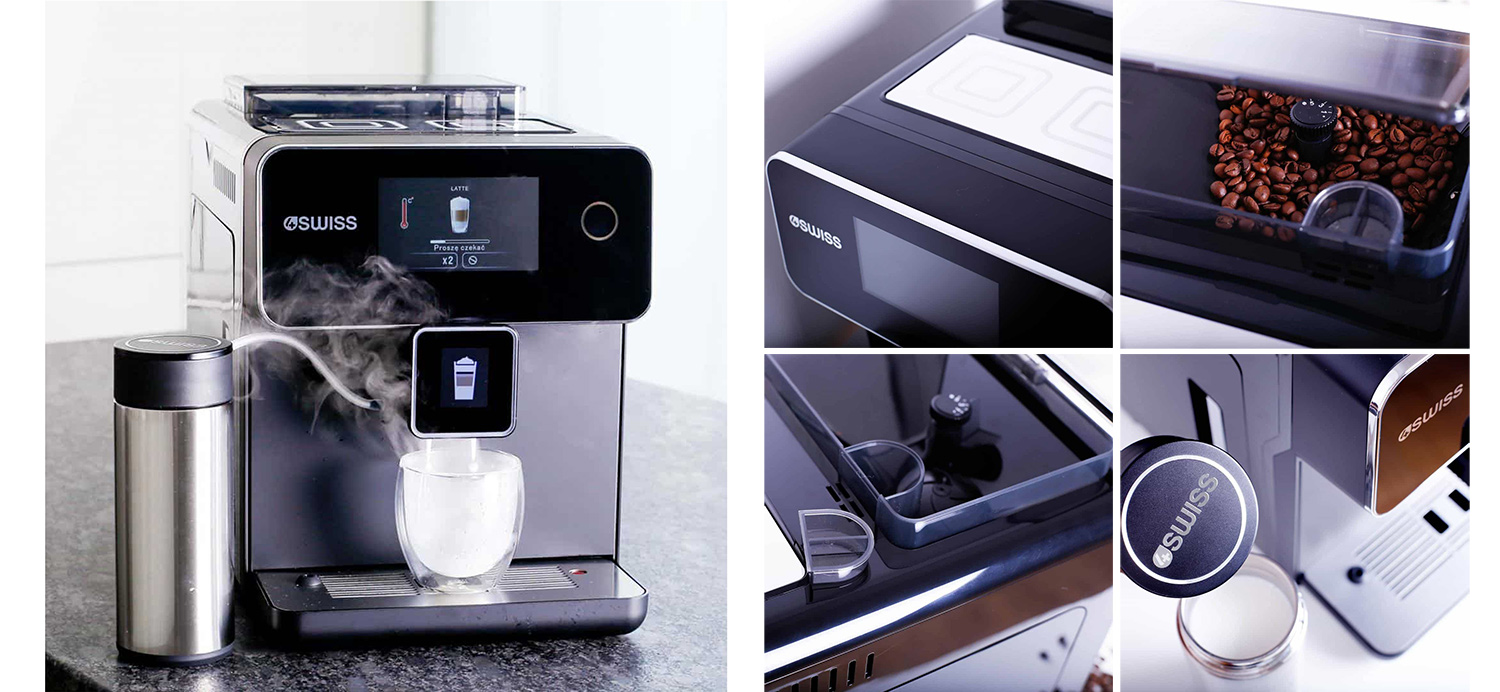 Ekspres automatyczny 4Swiss Roma A10 to propozycja dla najbardziej wymagających klientów. Urządzenie łączy w sobie dwie cechy będące synonimem nowoczesności – minimalistyczny design i bogato wyposażone wnętrze. Intuicyjna obsługa, kompaktowe wymiary i doskonałe parametry techniczne tworzą całość, która świetnie sprawdzi się w użytkowaniu domowym, ale także w biurze, gabinecie spa, a także małej gastronomii. Dzięki rozbudowanemu systemowi personalizacji, pozwoli Ci skomponować dokładnie taką kawę, jaką lubisz. Wystarczy jeden przycisk, aby otrzymać wyśmienite: espresso, americanę, cappuccino i latte, a także idealnie spienione mleko i wrzątek do przyrządzenia np. herbaty.